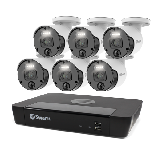 Swann 8 Channel Security System: 4K Super HD NVR-8580 with 2TB HDD & 6 x 4K Upscale NHD-875WLB Bullet Cameras
